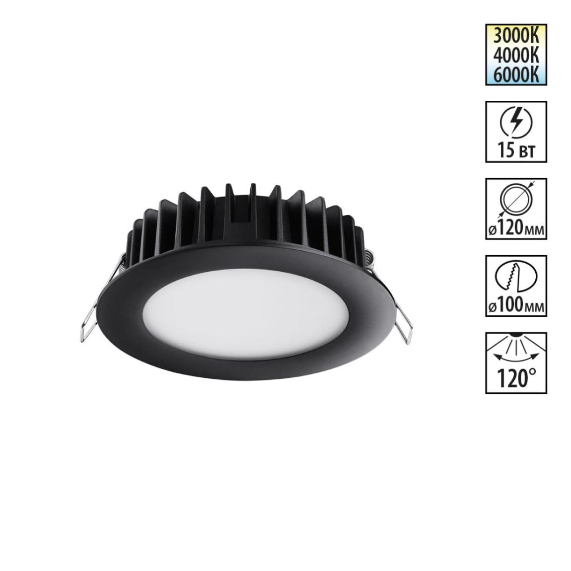 358951 SPOT NT22 444 черный Встраиваемый светодиодный светильник с переключателем цветовой температуры IP20 LED 3000К\4000К\6000К 15W 220V LANTE