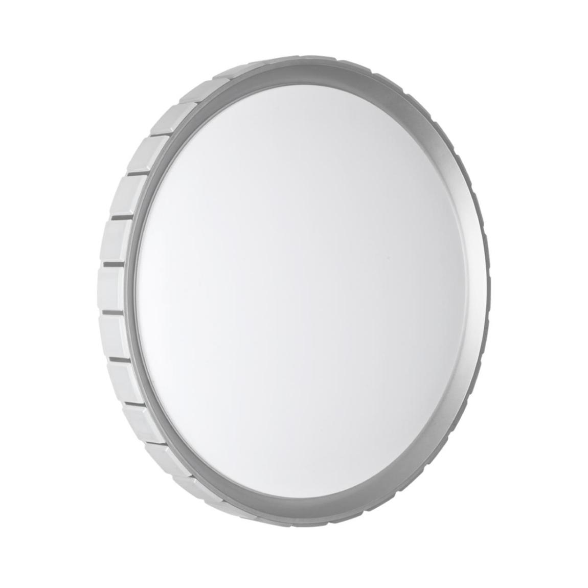 Светильник 7696/ELN линии KUPI SILVER состоит из металлического основания (базы) и пластикового рассеивателя. Материал рассеивателя — высококачественный пластик марки PMMA 2.0 белого цвета с матовой гладкой поверхностью. Пластик обеспечивает светильнику равномерное рассеивание и хорошее светопропускание. Форма плафона — круглая, декорирована рельефным пластиковым светопропускающим ободом, цвет серебро. Степень защиты IP43 позволяет использовать светильник в определенных зонах влажных помещений. В комплект входит LED-модуль с линзами мощностью 76 Вт, соответствующей лампе накаливания 740 Вт, а также переключатель температуры цвета (ССT) на драйвере, с помощью которого осуществляется изменение цветовой температуры 3000/4000/6000 К и переход светильника в режим теплого/белого/холодного света. Для установки необходимого режима рекомендуется использовать удлиненный тонкий предмет типа небольшой отвертки.