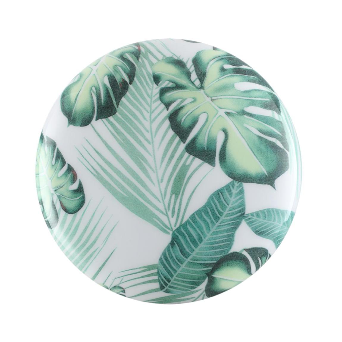 Светильник 7748/СL линии FLORI состоит из металлического основания (базы) и пластикового рассеивателя. Материал рассеивателя — высококачественный пластик марки PMMA 2.0 белого цвета с глянцевой поверхностью, обеспечивающий светильнику равномерное рассеивание и хорошее светопропускание. Форма плафона: круглая, декорирована орнаментом на плафоне с зеленым рисунком тропических листьев и съемным ободом белого цвета. Рисунок на плафоне выполнен методом цифровой печати по технологии прямого нанесения красок на акриловый лист. С целью предотвращения выцветания красок поверх рисунка нанесен слой белой краски. После выдувания плафона при высоких температурах красочный рисунок приобретает стойкость и долговечность. Степень защиты IP43 позволяет использовать светильник в определенных зонах влажных помещений. В комплект входит заменяемый LED-модуль с линзами мощностью 30 Вт, соответствующей лампе накаливания 270 Вт. Источник света имеет комфортную цветовую температуру 4000 К (белый свет).
