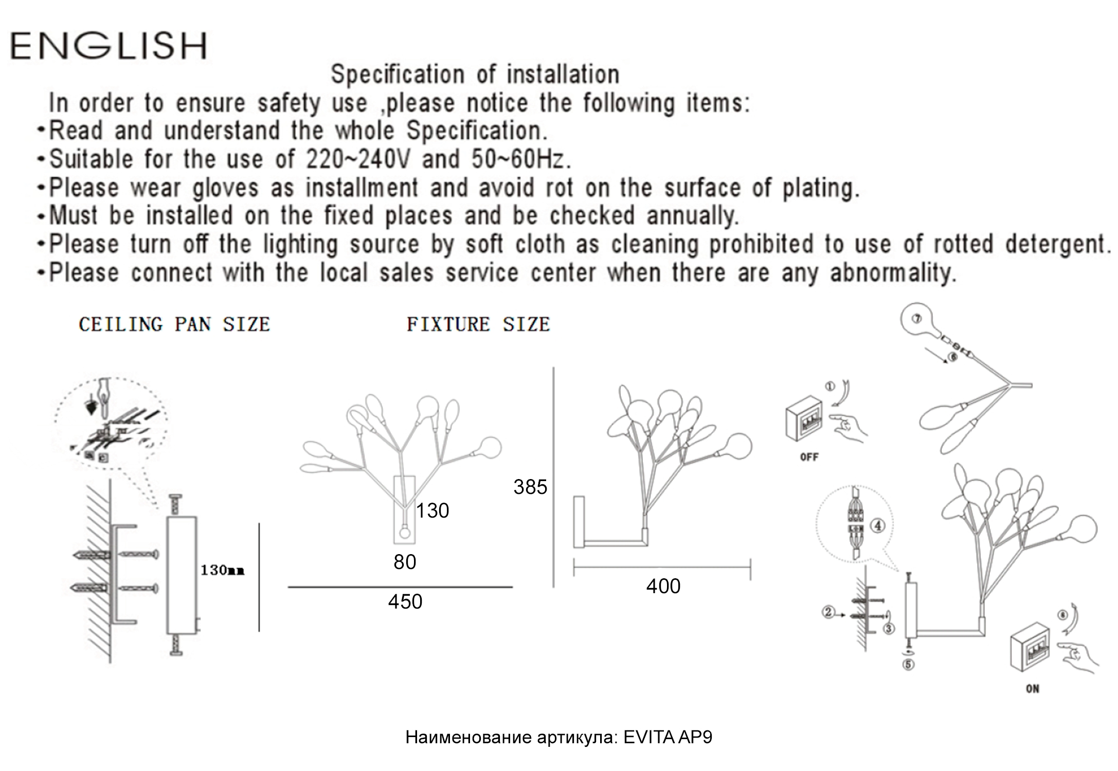 | Артикул | EVITA AP9 WHITE/TRANSPARENT |