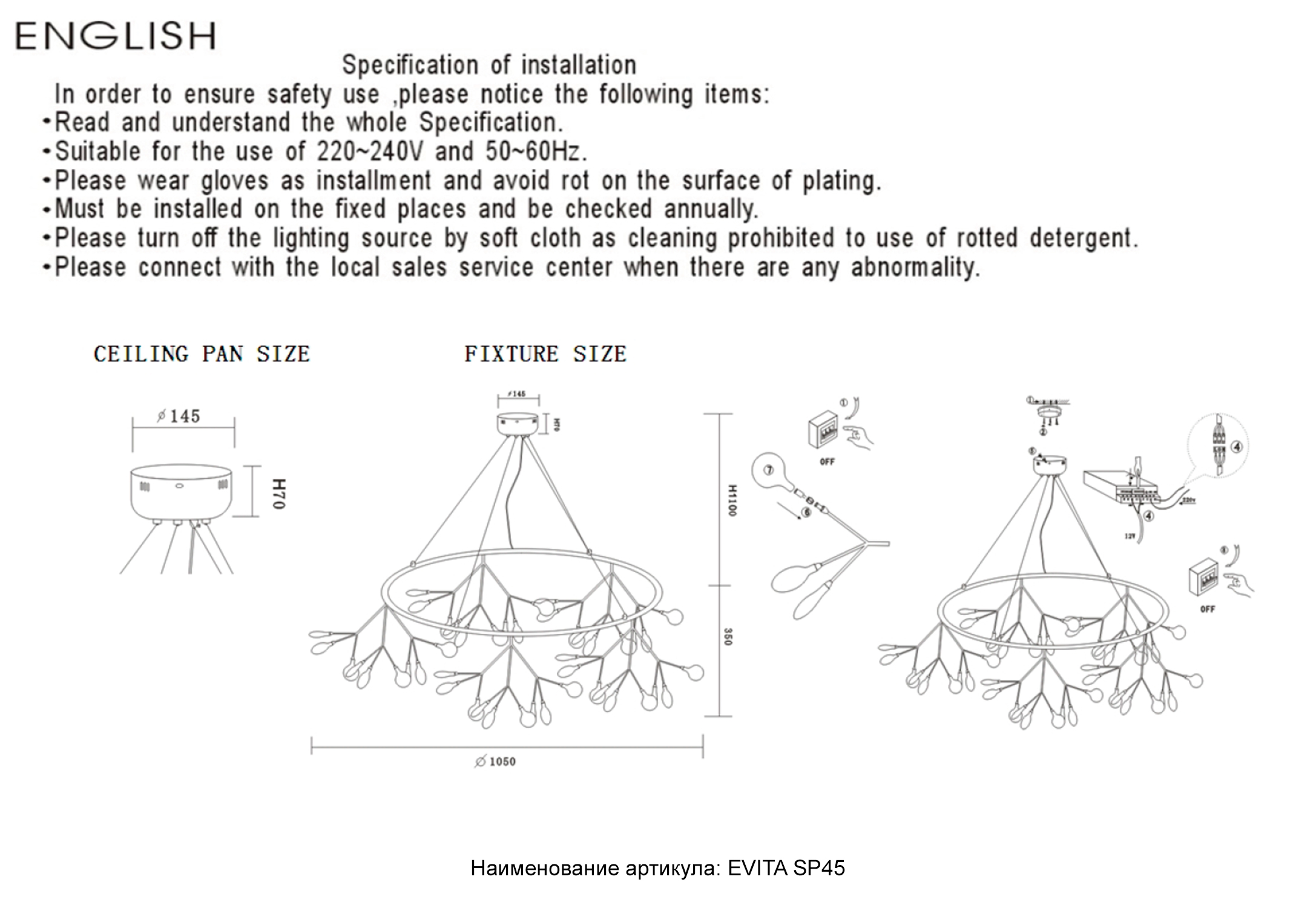 | Светильник диаметр (мм) | 1050 |